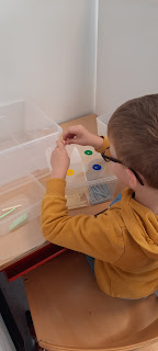 Om het werken aan onze bank verder onder de knie te krijgen, maakten we kennis met de werkdozen. Eerst maakten we een puzzel en dan voerden we opdrachten uit binnen een werkdoos. Het werken aan onze bank begint te lukken. Soms is het nog wat moeilijk om te blijven zitten, maar we blijven oefenen. Vandaag gingen we ook voor de eerste keer fietsen!